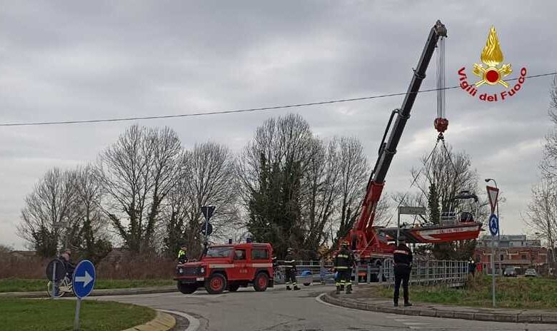 Posizionata in acqua sul Brenta anche l’imbarcazione dotata di sonar per scandagliare il fiume nell’ipotesi di una caduta in acqua.