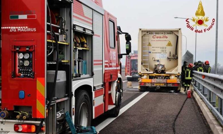 Stradale prima e poi i Vvf evitano incendio camion in A31
