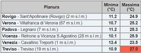 Dopo un non-inverno ci apprestiamo a vivere una seconda ondata di caldo fuori stagione. Quest’oggi le centraline Arpav posizionate in pianura hanno registrato valori decisamente superiori alla norma. La massima quest’oggi è stata rilevata a Treviso con 27 gradi, ma il caldo fuori stagione farà sentire il suo apice nella giornata di domenica.