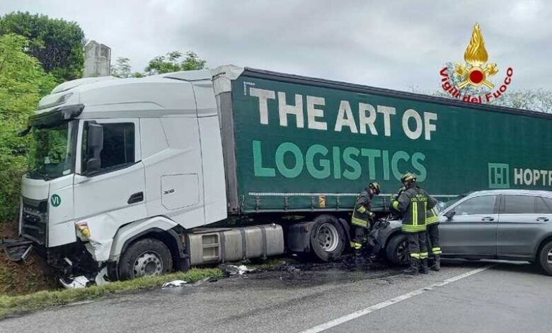 Incidente in tarda mattinata lungo la SP34, tra Ponte della Priula e Falzè, in località sant’Anna di Susegna, tra un suv e un autoarticolato, finito parzialmente fuoristrada.