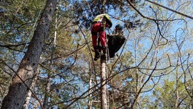 Parapendista appeso tra gli alberi: arriva l’autoscala dei VVF