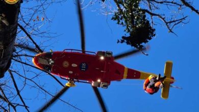 Elicottero Treviso Emergenza recupera 72enne finito in un scarpata in Alpago