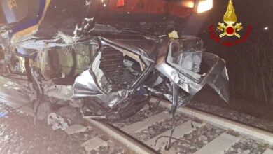 Grassaga di San Donà/auto investita da due treni passeggeri al passaggio a livello: nessuna persona ferita