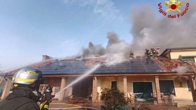 Jesolo/pannelli fotovoltaici a fuoco sul tetto. Colonna di fumo visibile da chilometri