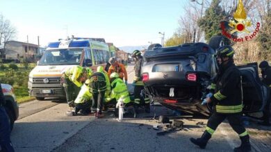 Auto si ribalta e prende fuoco: miracolati i cinque a bordo