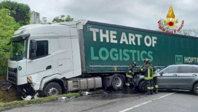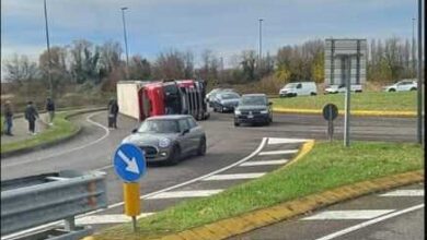 Tir carico di elettrodomestici si ribalta in rotonda: Cadore-Mare in tilt a San Vendemiano per alcune ore