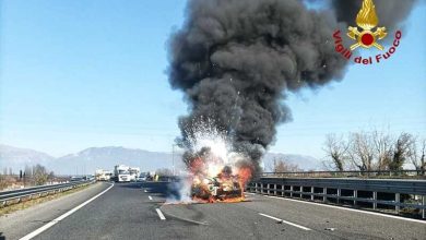 San Vendemiano/Auto contromano in A27: Mercedes va a fuoco dopo scontro con un’altra vettura