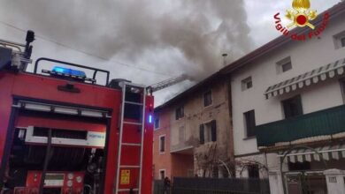 Tetto a fuoco in centro a Sarone di Caneva