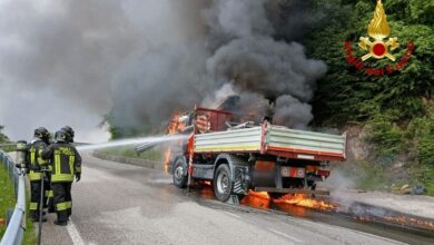 Camion a fuoco sulla strada per Piancavallo