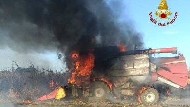 Mietitrebbia a fuoco a Porcellengo