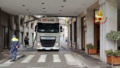Treviso/Camionista calcola male misure e rimane incastrato nel sottopasso dell’hotel
