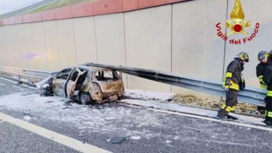 Treviso: auto a fuoco in tangenziale