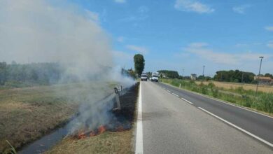 San Biagio: s.u.a. sulla Postumia per incendio sterpaglie lungo la banchina