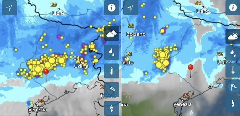 Ma la mattinata non è ancora finita, un altro sistema temporalesco, presente sulle Prealpi bellunesi si sta muovendo verso est.