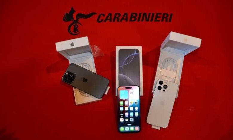 Fermati per un controllo, i tre sono stati perquisiti. L’ispezione è stata estesa anche all’autovettura parcheggiata nelle vicinanze, risultata in loro uso. All’interno del mezzo, i Carabinieri hanno rinvenuto tre confezioni contenenti simulacri di iPhone 16 Pro, tutti con lo stesso codice IMEI e dotati di un falso sistema operativo Apple, non funzionante e pieno di errori.