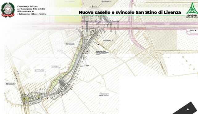 • il nuovo svincolo e casello di San Stino di Livenza, che sorgerà a circa due chilometri ad est dell’attuale, e che sarà potenziato con 3 porte di ingresso e 5 di uscita per una larghezza complessiva di circa 70 metri della linea di esazione, con il completamento della tangenziale “Pancino”;