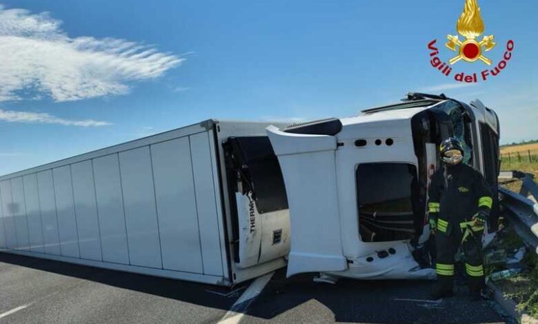 Tir ribaltato in A4: autostrada riaperta dopo 4 ore. I feriti, sono marito e moglie