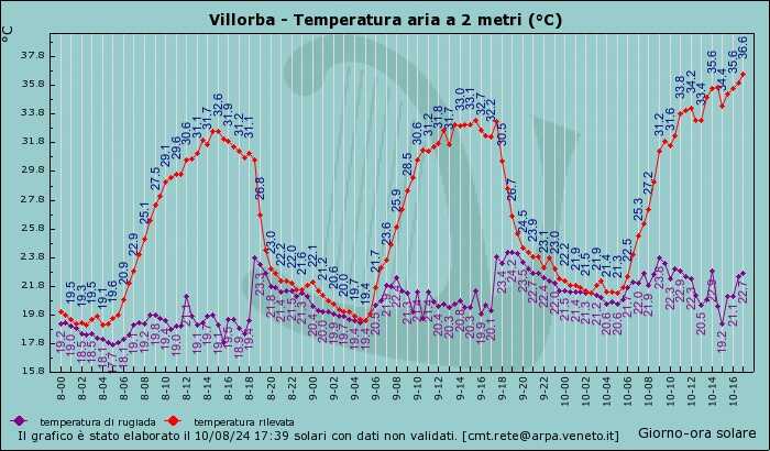 E’ stato un pomeriggio piuttosto bollente nella Marca e nella Sinistra Piave come confermano i 36,6° C rilevati a Villorba e i 36° sfiorati a Noventa di Piave.
