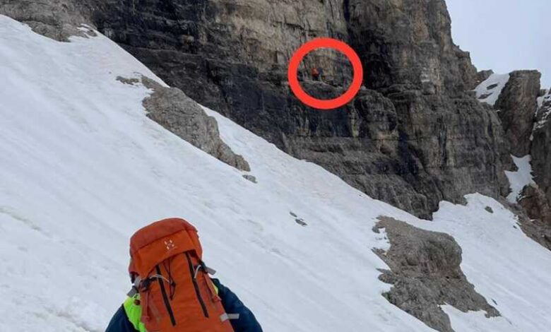 I due soccorritori si sono poi avvicinati a piedi, raggiunti da un terzo soccorritore arrivato dal Rifugio Giussani.