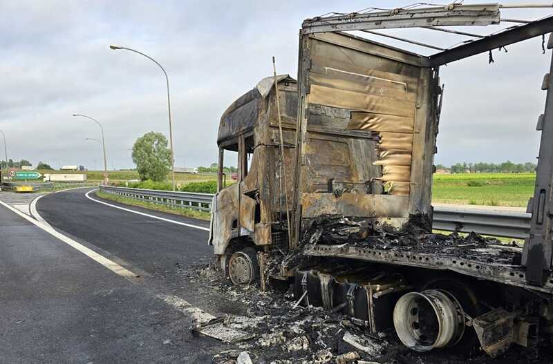 Forti disagi per Tir andato a fuoco tra Portogruaro e San Stino