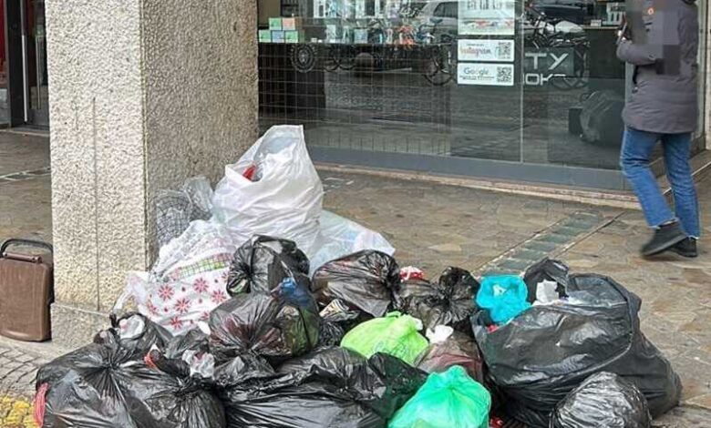 dell’immondizia in via Roma, nelle vicinanze della stazione delle corriere di Treviso.