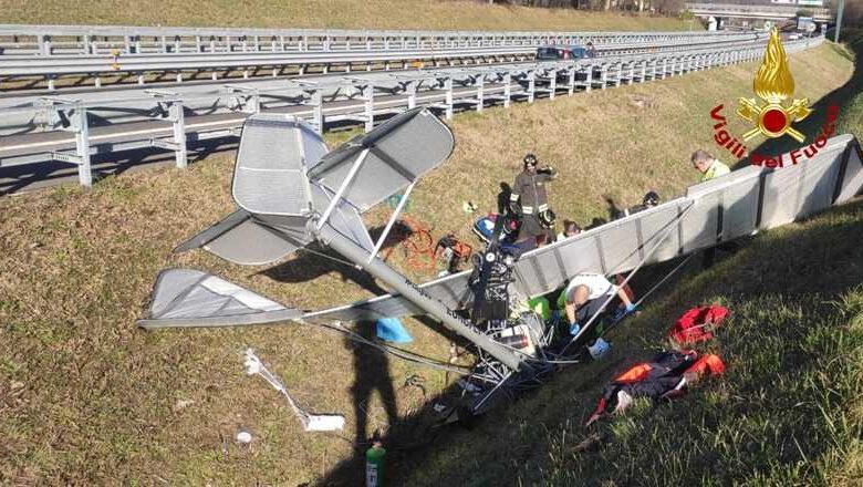 Ultraleggero cade nel canale di scolo dell’A31: pilota ferito in maniera grave