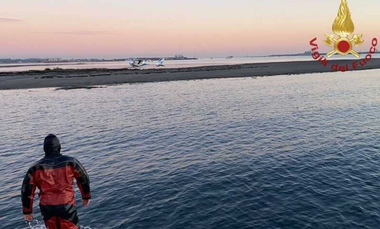 Sul posto sono intervenuti i Vigili del Fuoco, giunti via acqua, per mettere in sicurezza il velivolo, vincolandolo con cime e ancore per evitare spostamenti con l’arrivo della marea.