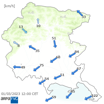 Le centraline dell’Osmer hanno registrato a Trieste, raffiche fino a 122km/h.