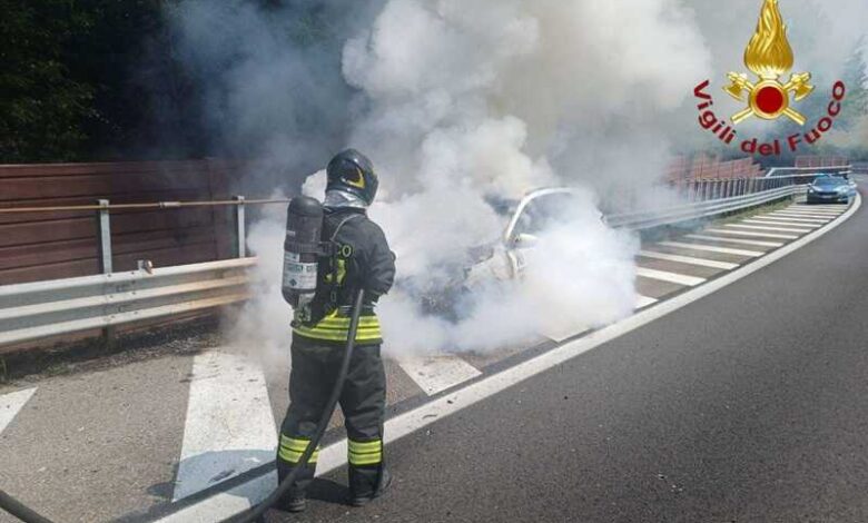 Vettura va a fuoco in A27 a Vittorio Veneto